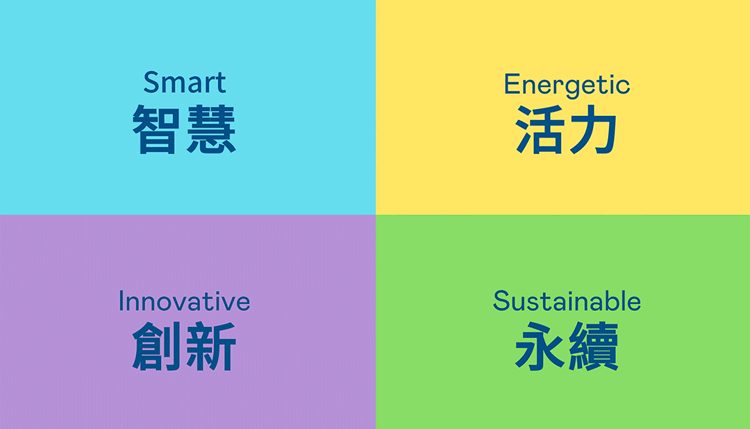 从稳重、信赖的金世豪蓝开创新色彩,注入象征智慧蓝、活力黄、创新紫、永续绿的品牌色及动态多变的几何图形,呼应不设限的「Possibilities」精神,代表多元的专业技术及领域,在碰撞中相互触动、融合、延伸,持续激荡出更多新的可能性。